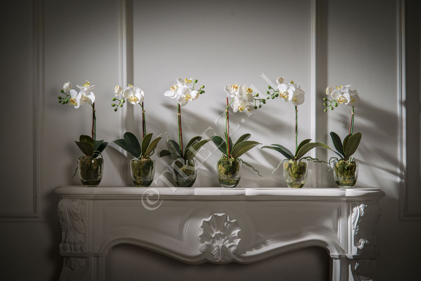 Орхидея Фаленопсис белая с мхом, корнями, землёй