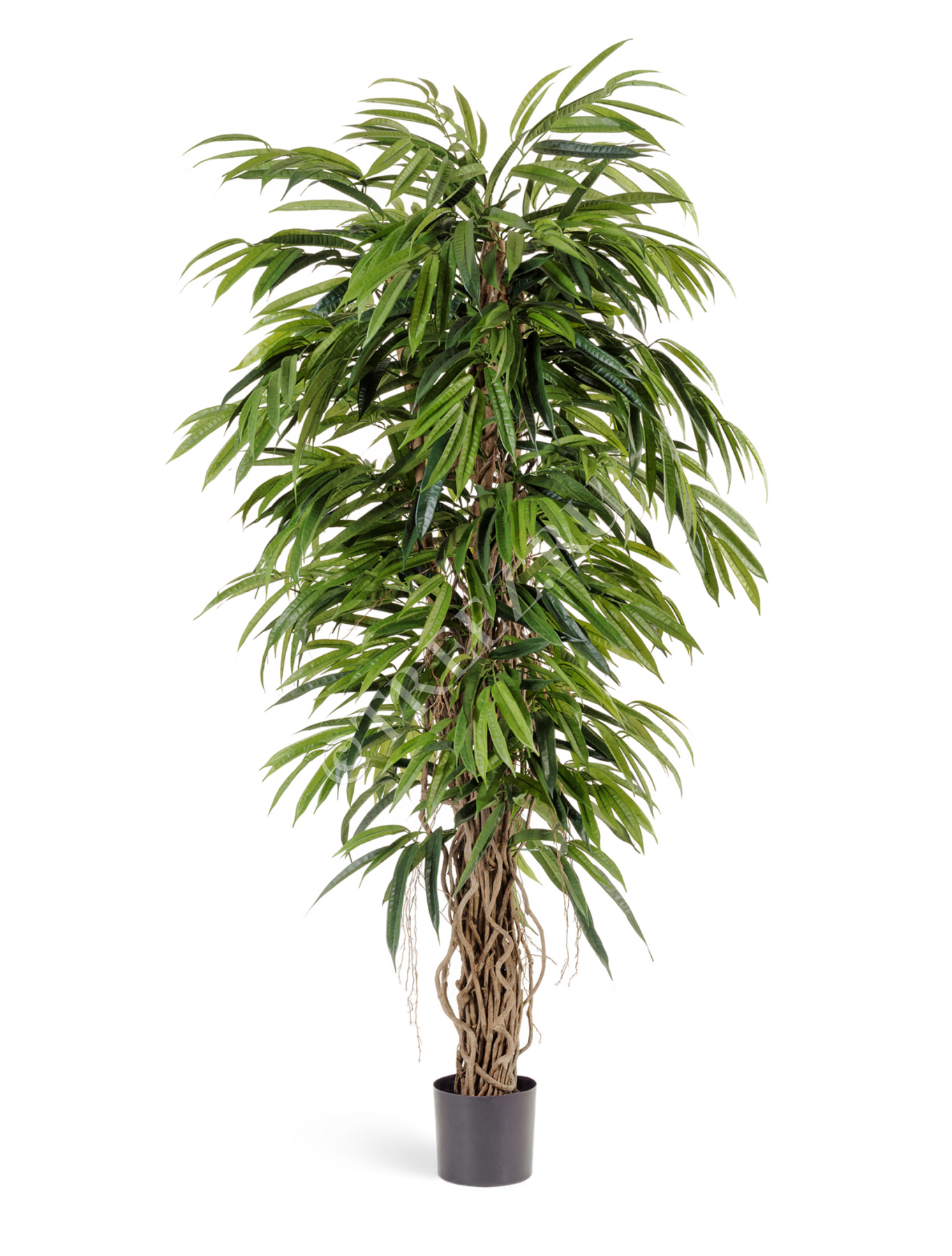 Лонгифолия лиана (еще этот вид называют Фикусом Али) - отличное решение, если Вам необходимо что-то пышное. Растение имеет пышную крону с листьями вытянутой формы насыщенно-зелёного цвета. Оно создаст в Вашем интерьере отличный зелёный акцент. Ствол из тонких деревянных лиан придает растению необычности. Это отличное решение, когда Вам хочется чего-то необычного, но не очень экзотического. Дерево можно разместить как в низком, так и высоком кашпо на Ваш выбор. Качество растения позволит Вам поместить его в любом месте, даже в непосредственной близости от глаз.