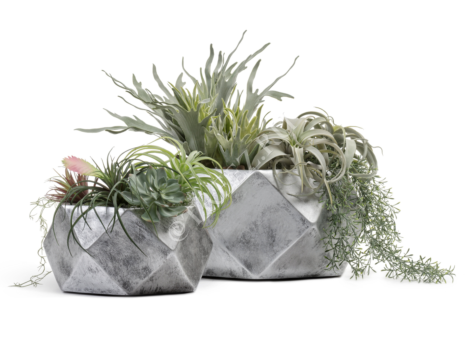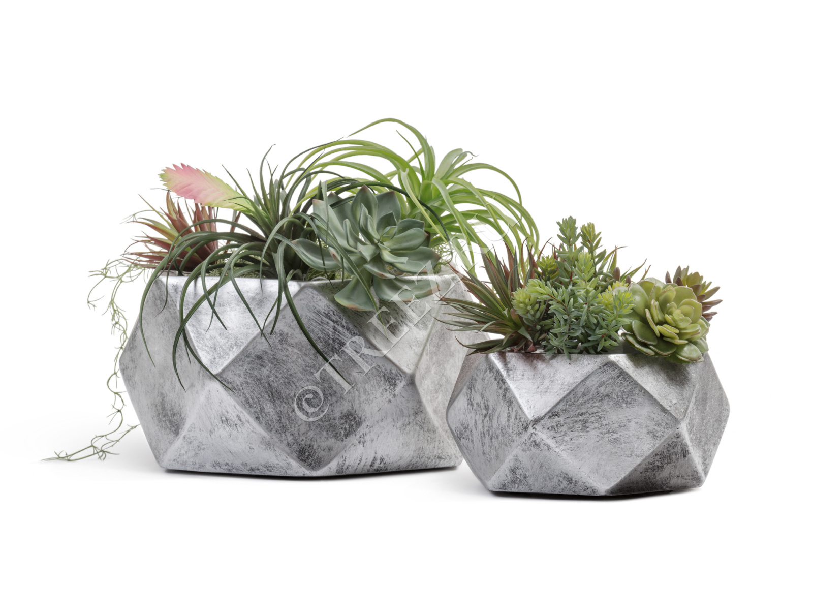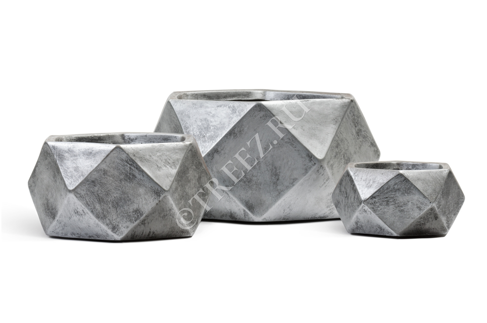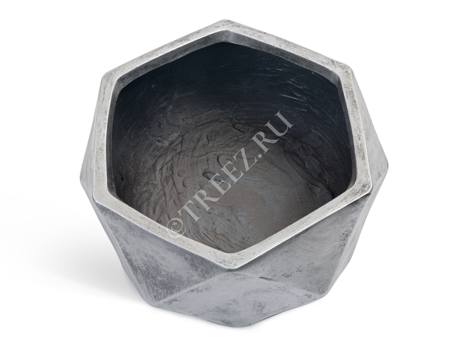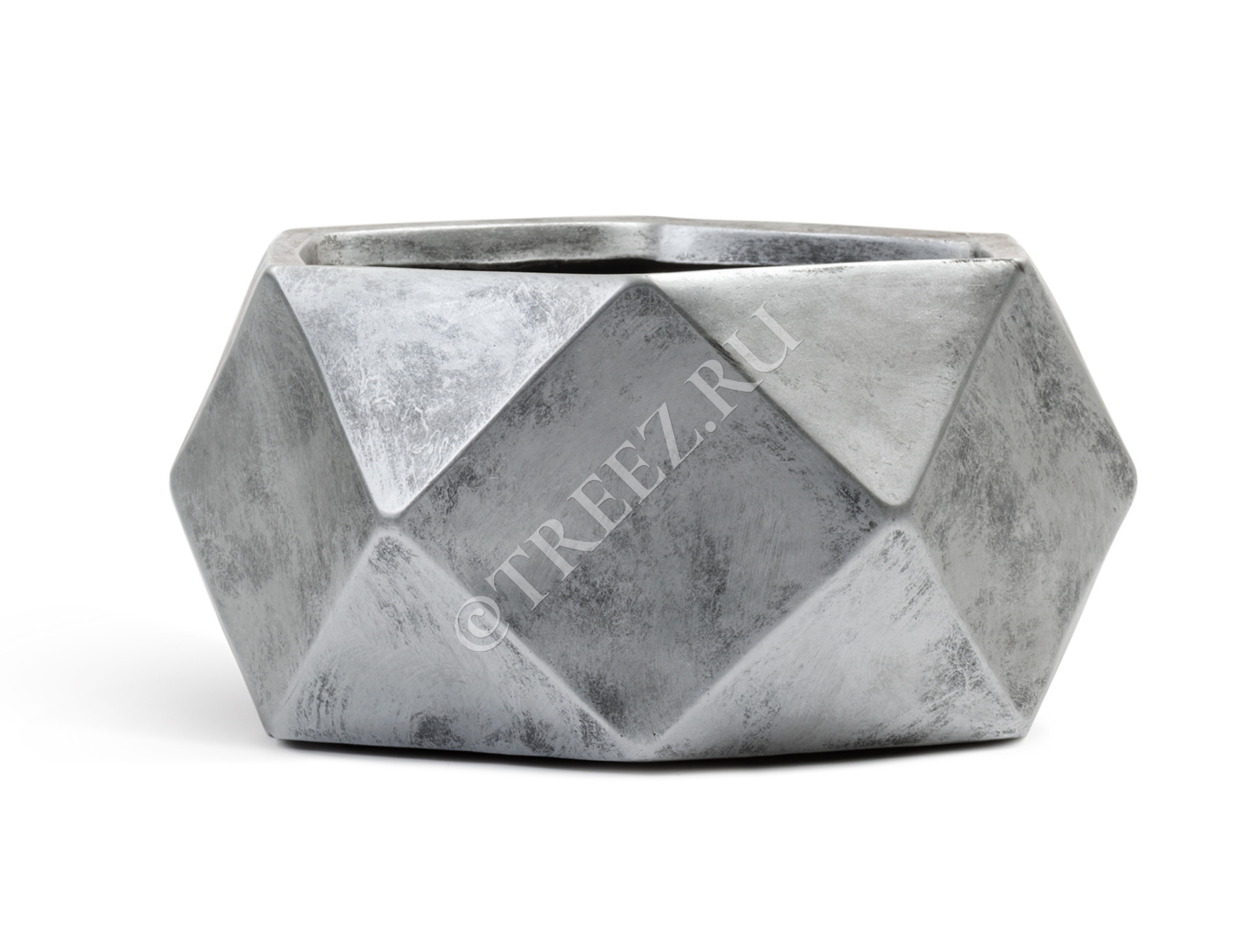 Кашпо TREEZ ERGO - Rombo - Низкая чаша-многогранник - Состаренное серебро