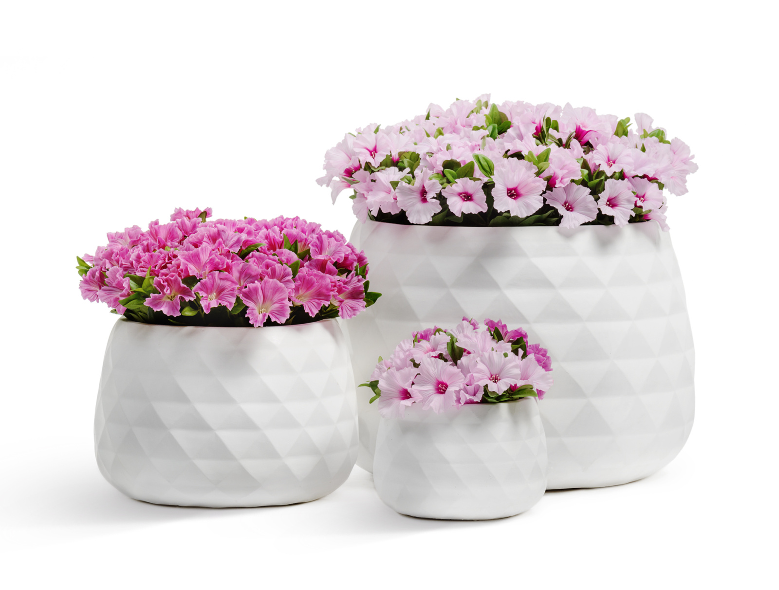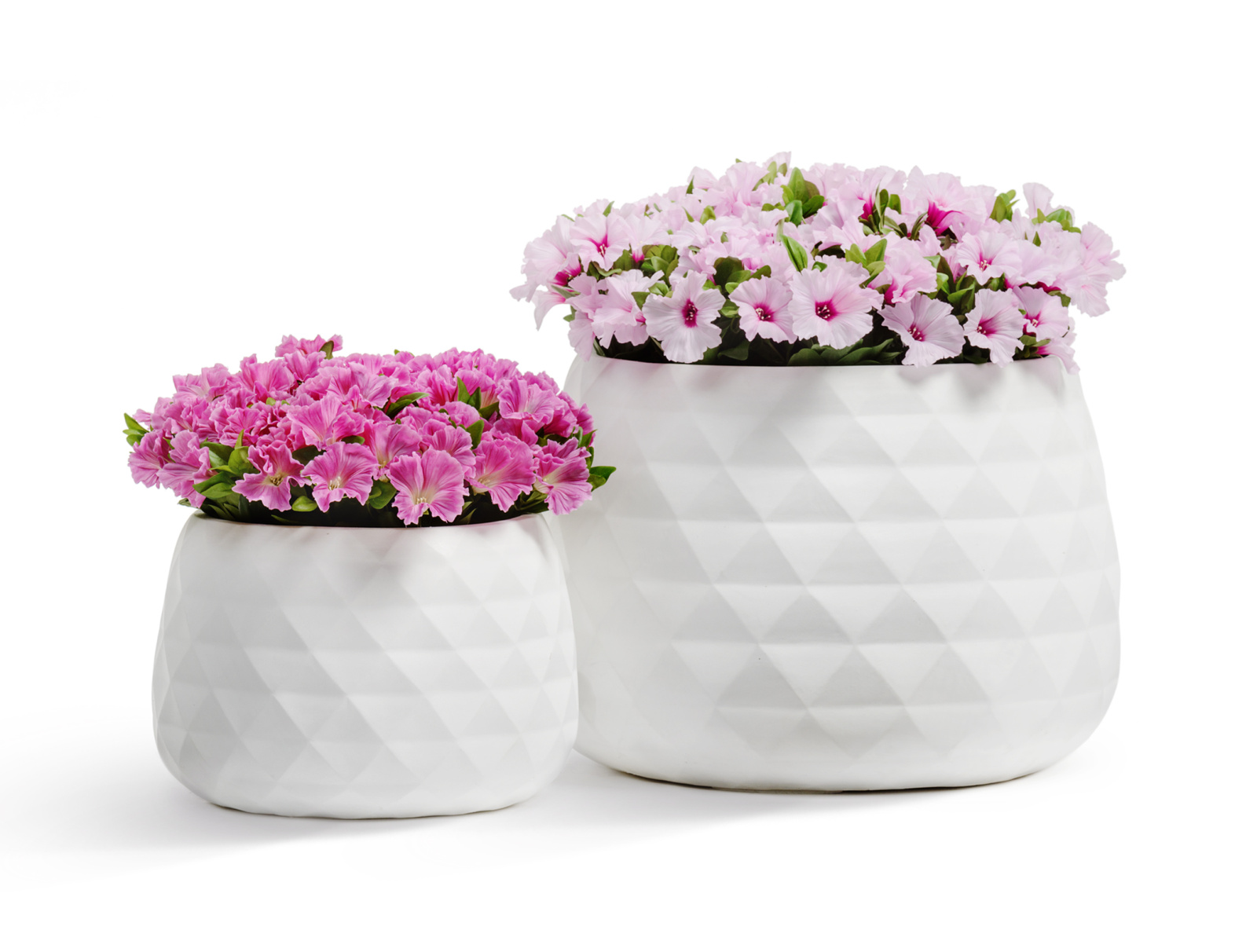 Все кашпо этой коллекции выдерживают низкие минусовые температуры и имеют на дне заготовку под дренажное отверстие, которое легко просверливается и позволяет использовать кашпо на улице.