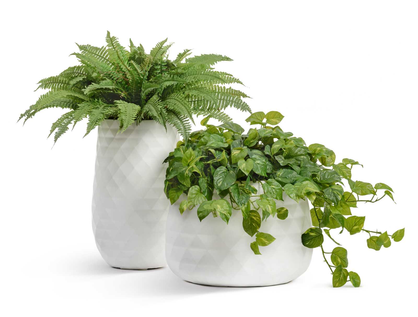 Основной материал, выбранный бельгийскими дизайнерами для этой коллекции, позволяющий создать качественно новые, современные, но доступные по цене кашпо, - файберклэй (композит - смесь цемента и полимерной смолы). Файберклэй фактически воспроизводит все нюансы терракотового кашпо, но имеет значительно меньший вес и большую прочность. На поверхности кашпо могут быть небольшие потертости, трещинки, выбоинки, либо сколы – это особенности ручного производства кашпо и структурные особенности данного экологичного материала.