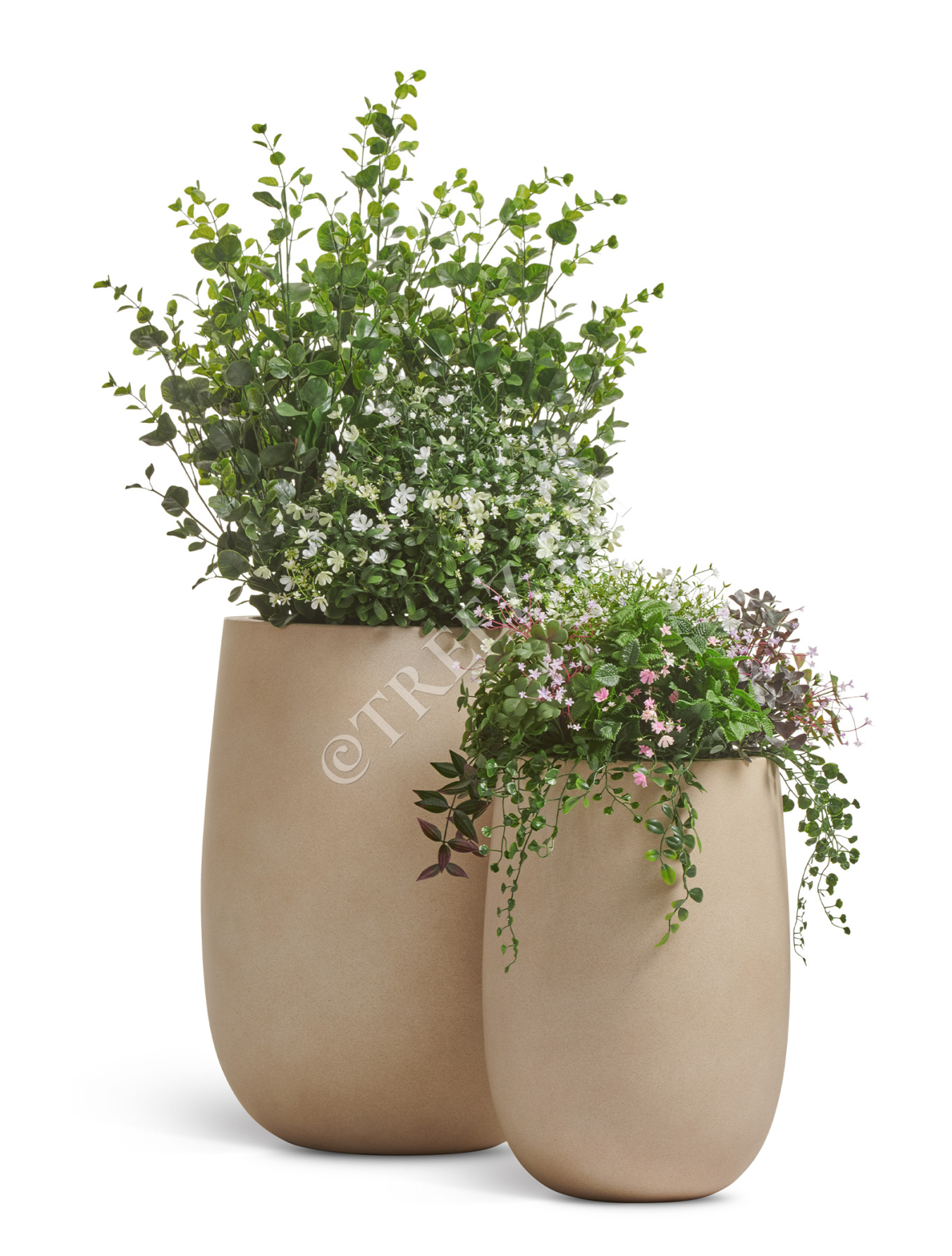 Кашпо TREEZ ERGO - Fine Rock - Высокая округлая чаша - Песок тёплый беж