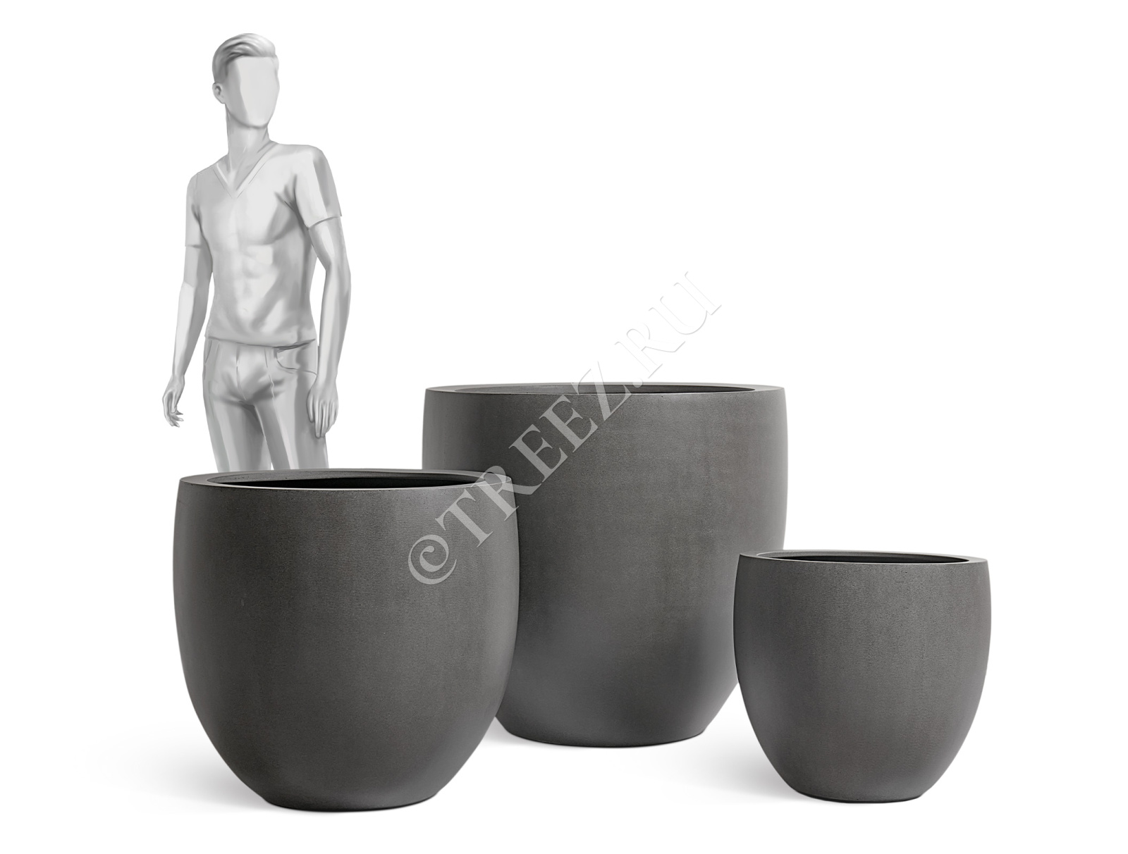 Кашпо TREEZ Effectory - Beton - Округлый конус - Тёмно-серый бетон