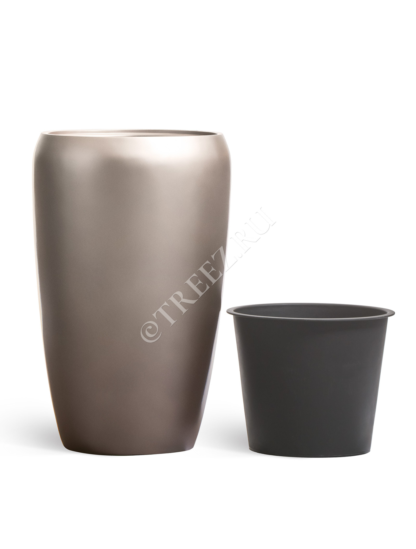 Кашпо TREEZ Effectory - Metal - Высокий округлый конус - Лаковое тёмное серебро