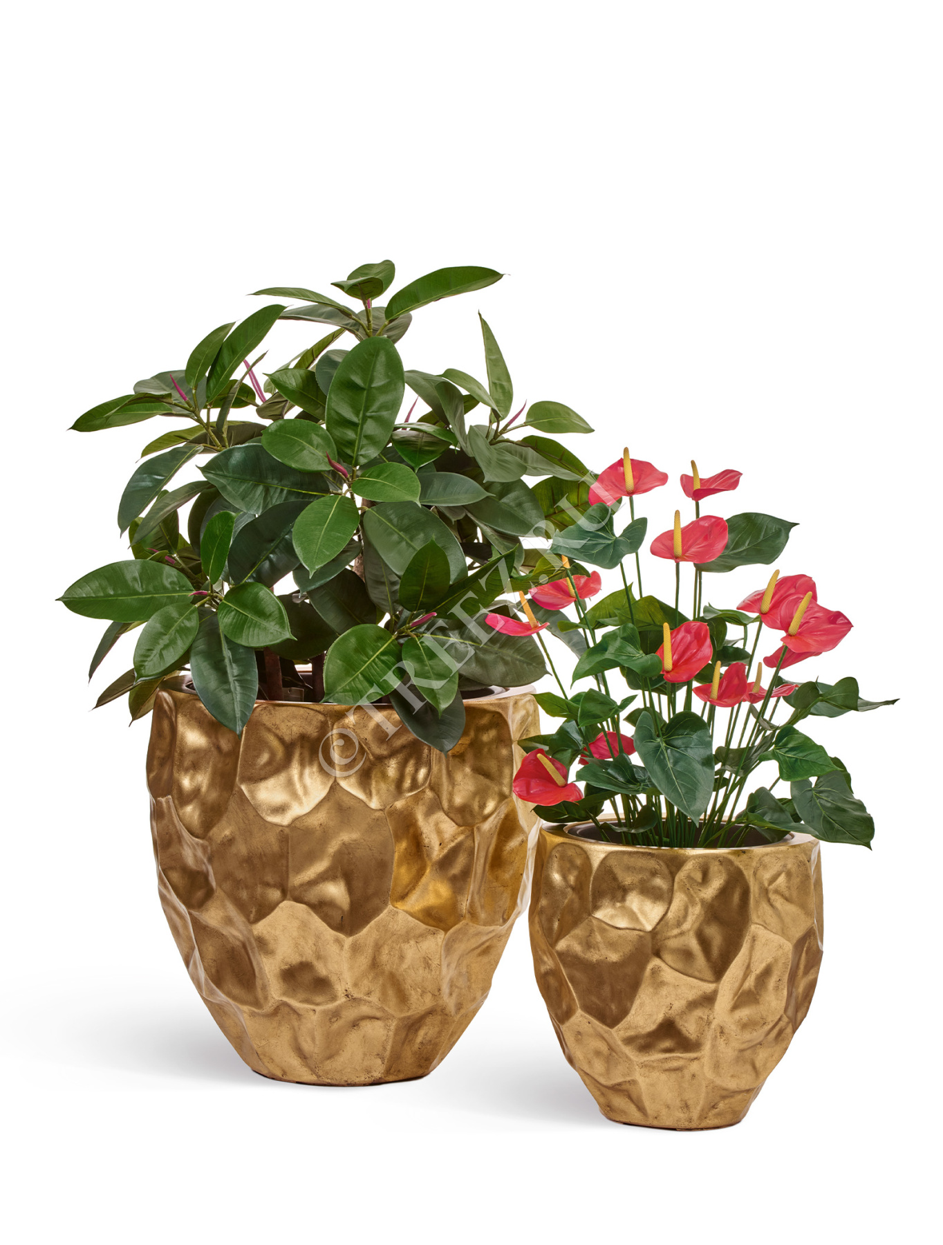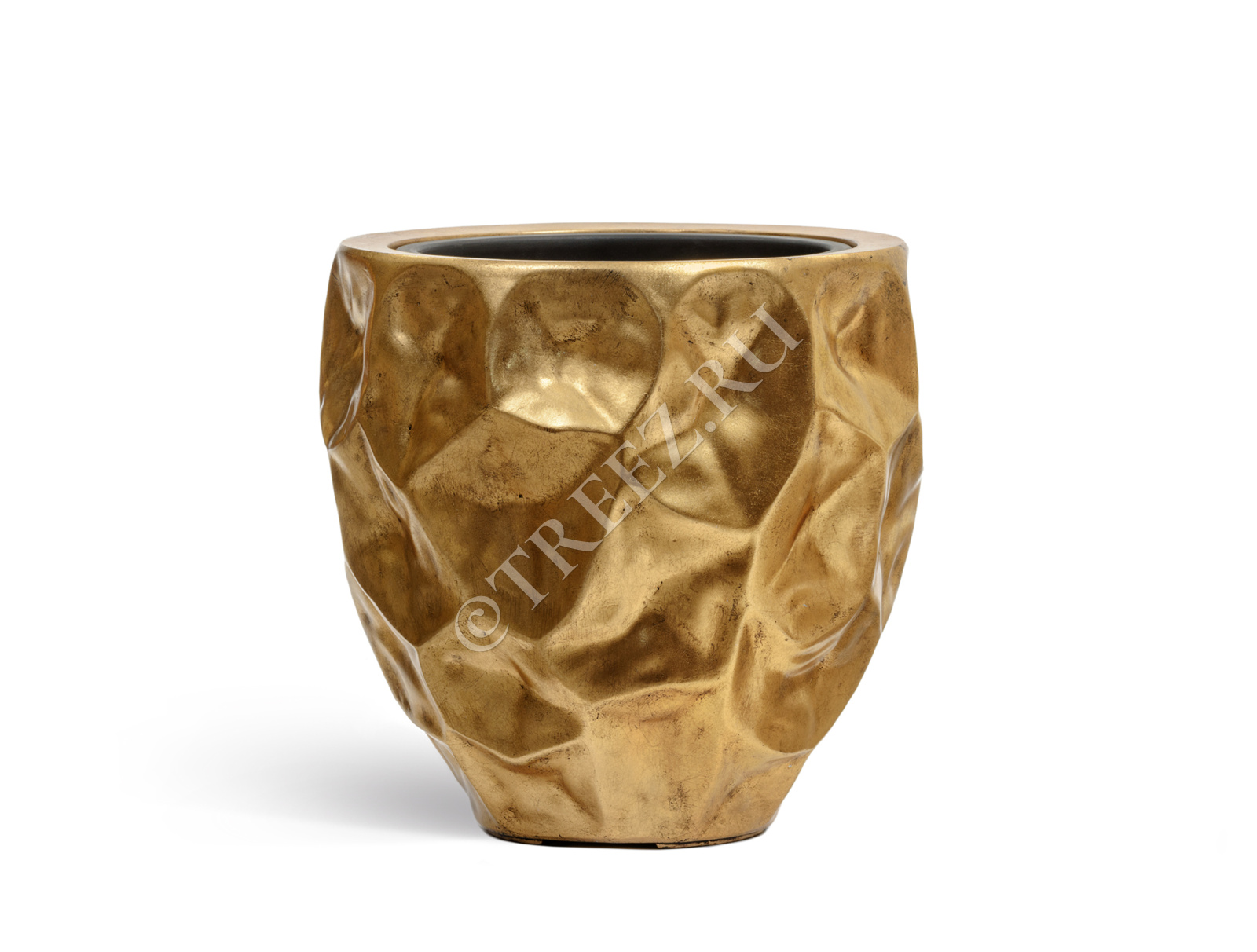 Кашпо TREEZ Effectory - Metal - Округлая чаша Design Crumple - Сусальное золото