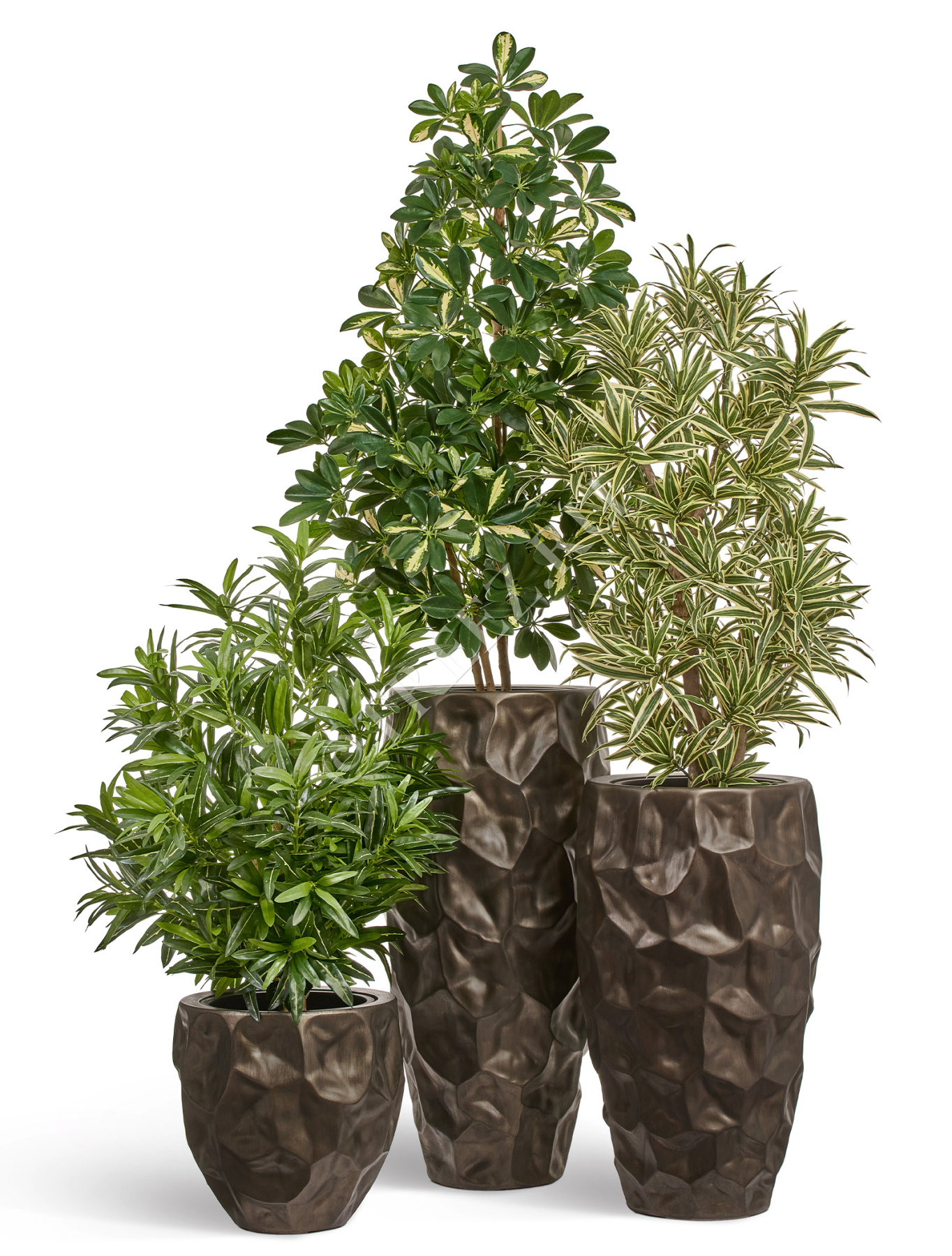 Стандартная упаковка - сет. Сет включает в себя по одному кашпо каждого размера.