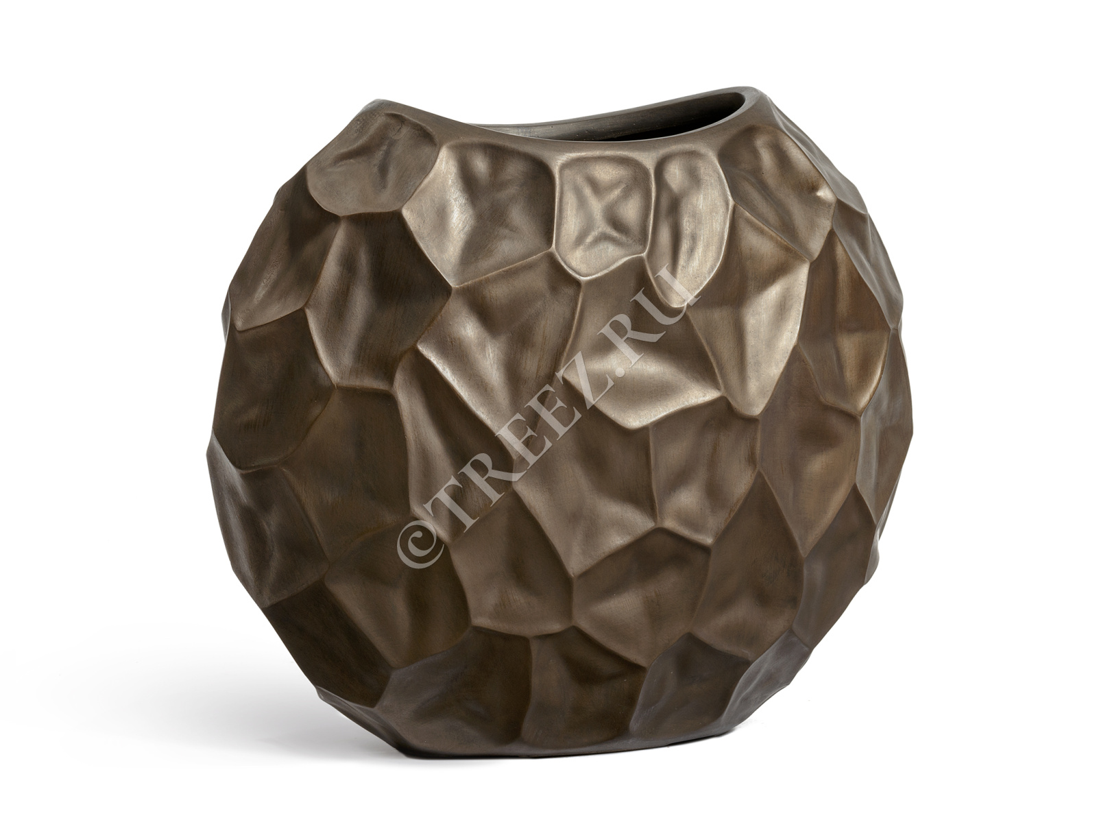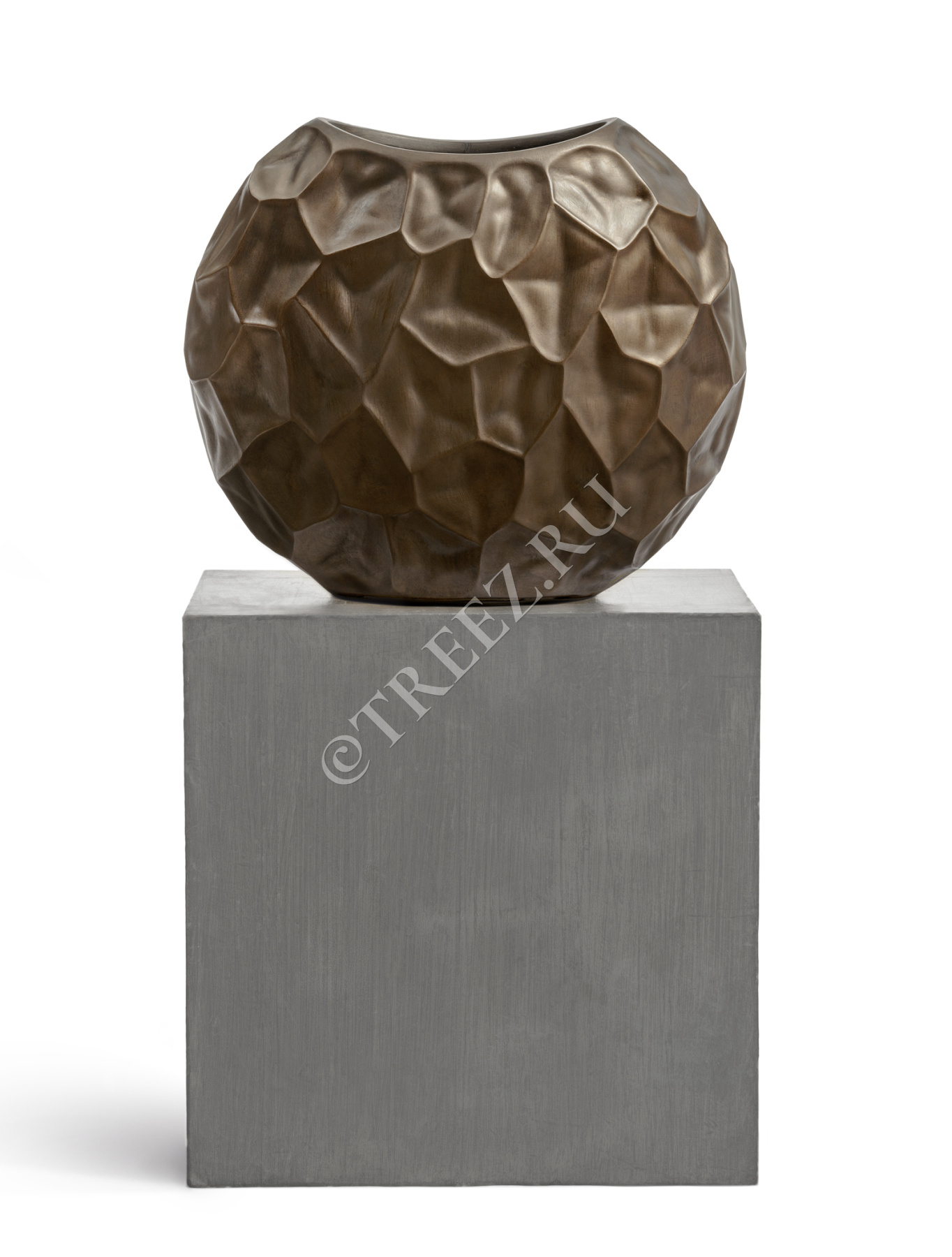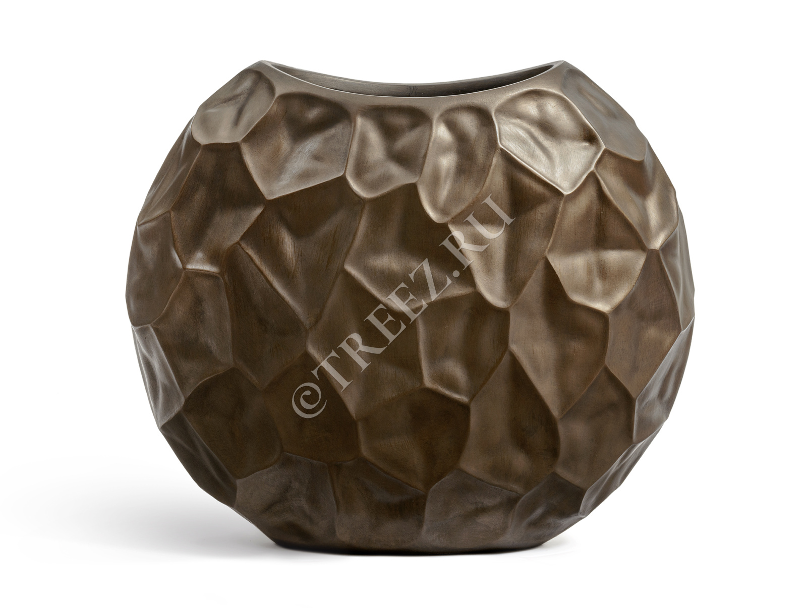 Кашпо TREEZ Effectory - Metal - Плоская сфера Design Crumple - Чернёная бронза