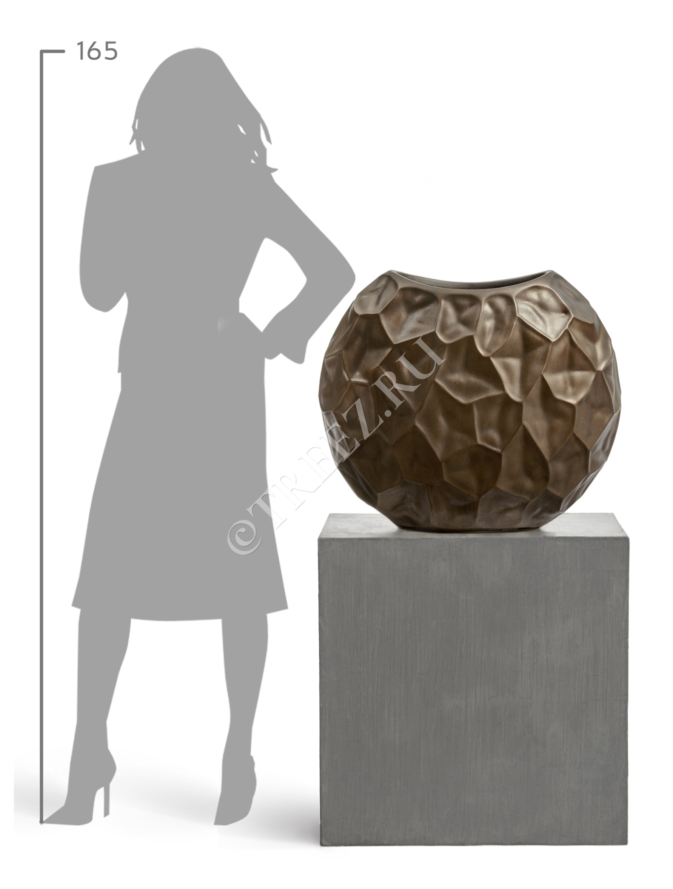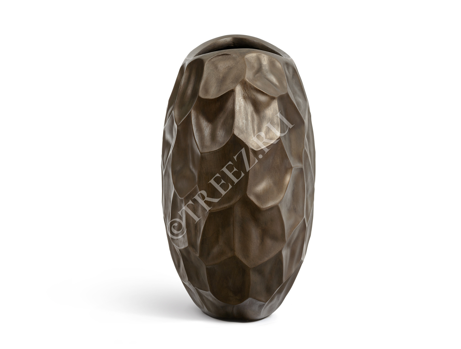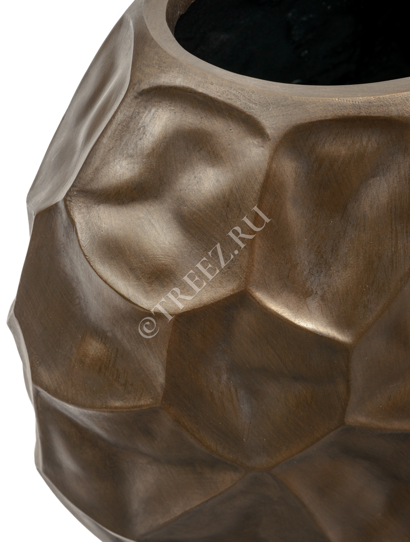 Кашпо TREEZ Effectory - Metal - Плоская сфера Design Crumple - Чернёная бронза