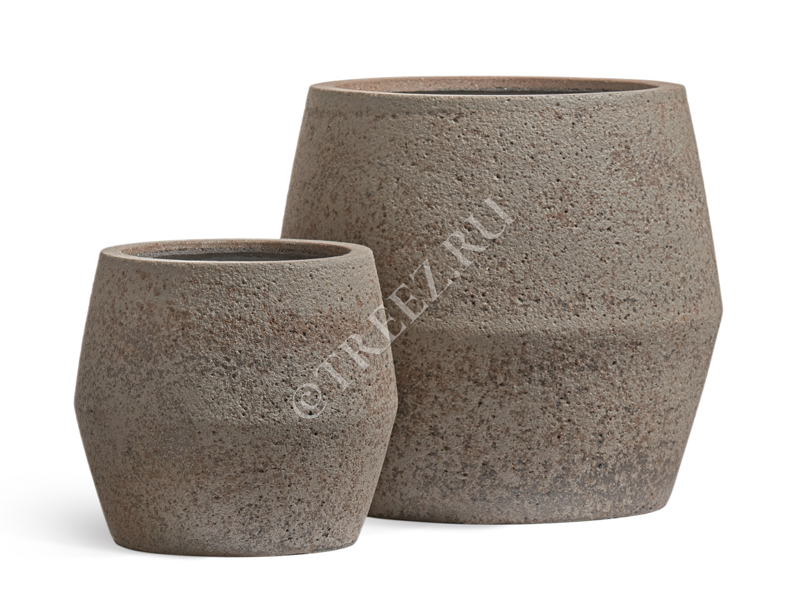 Кашпо TREEZ ERGO - Hard Rock - Высокая трапециевидная чаша - Песок серый беж