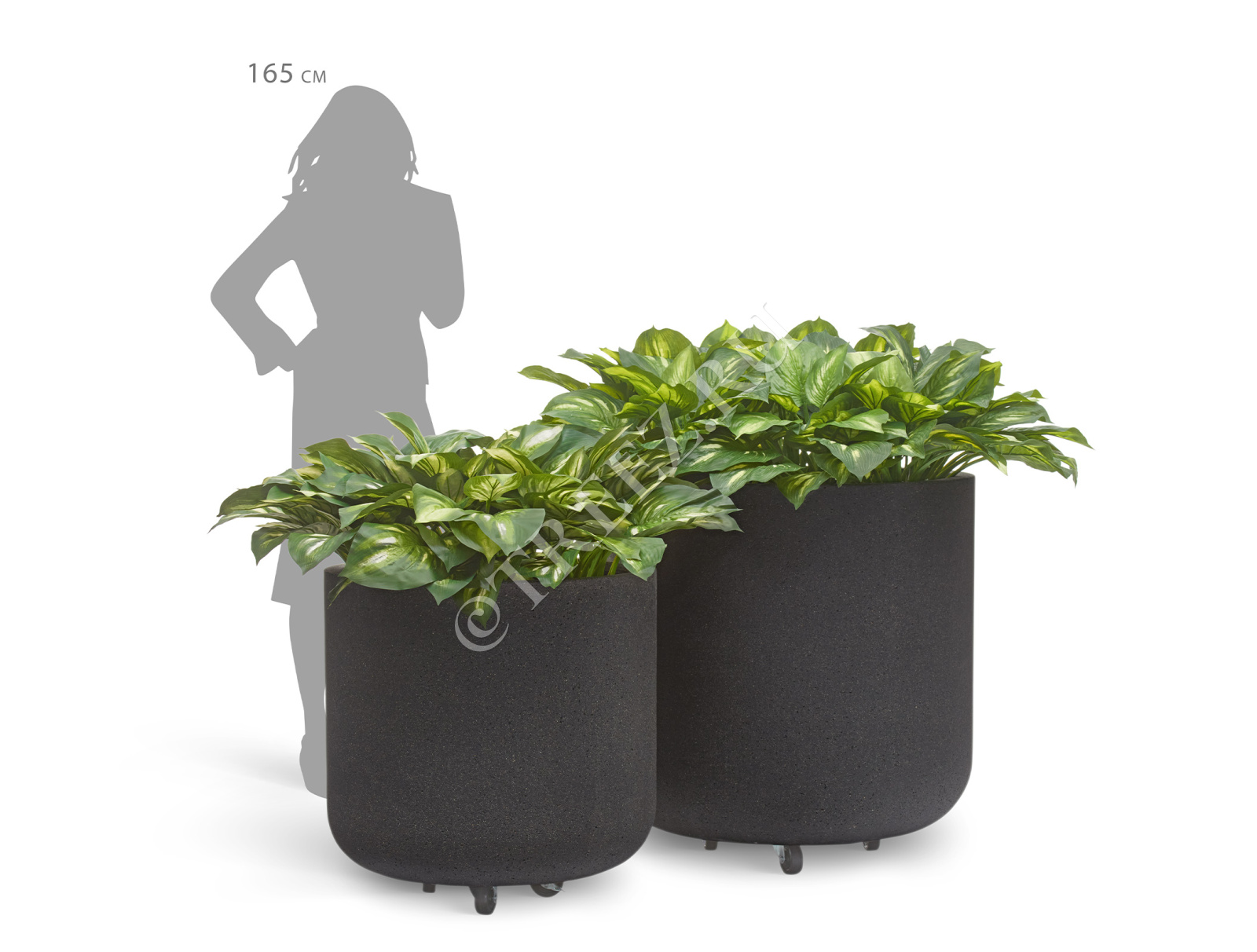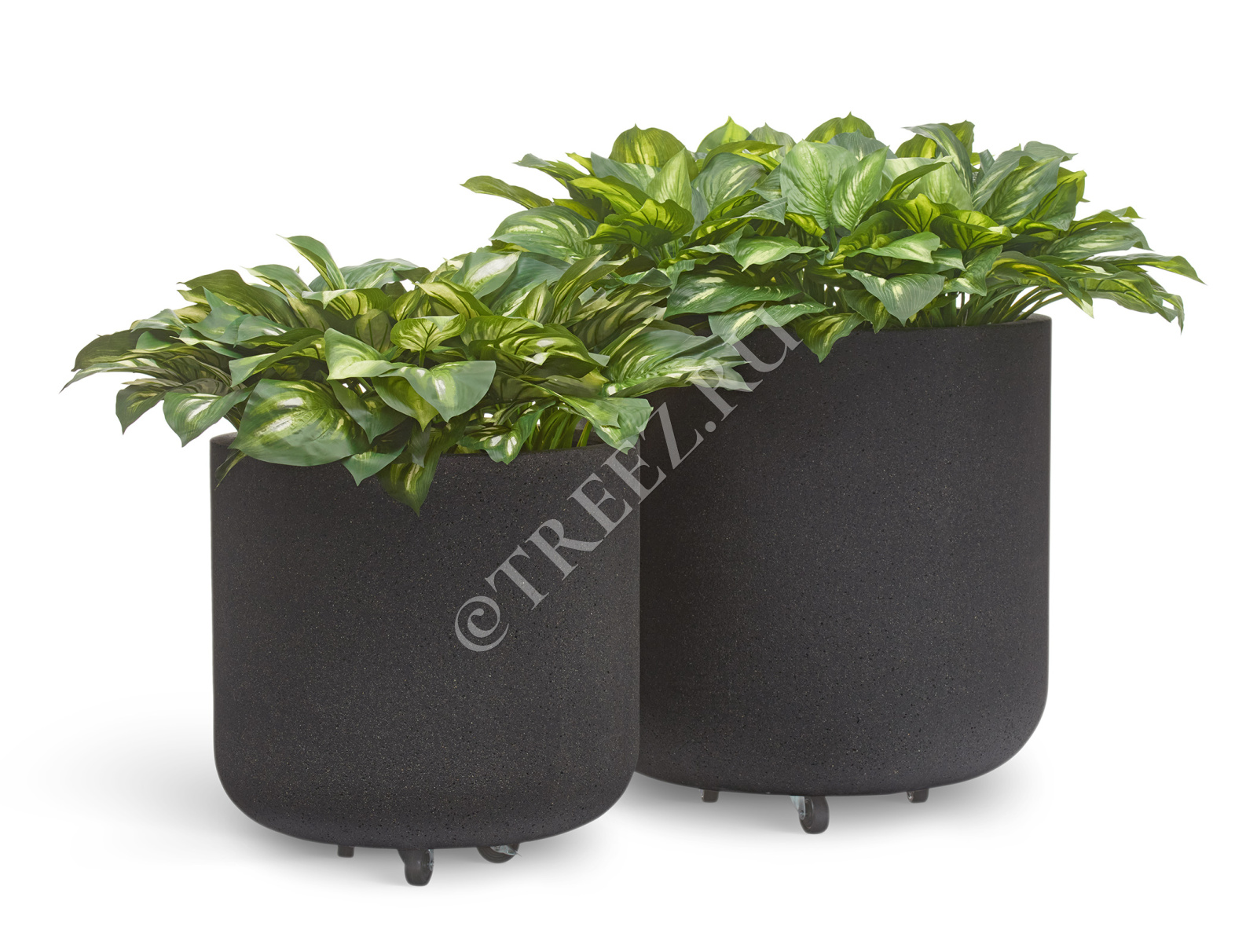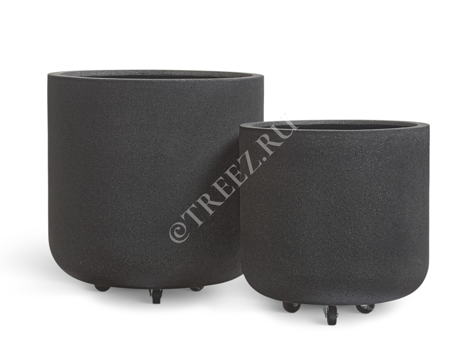 Кашпо TREEZ ERGO - Hard Rock - Цилиндрическая чаша на колёсиках - Чёрный песок