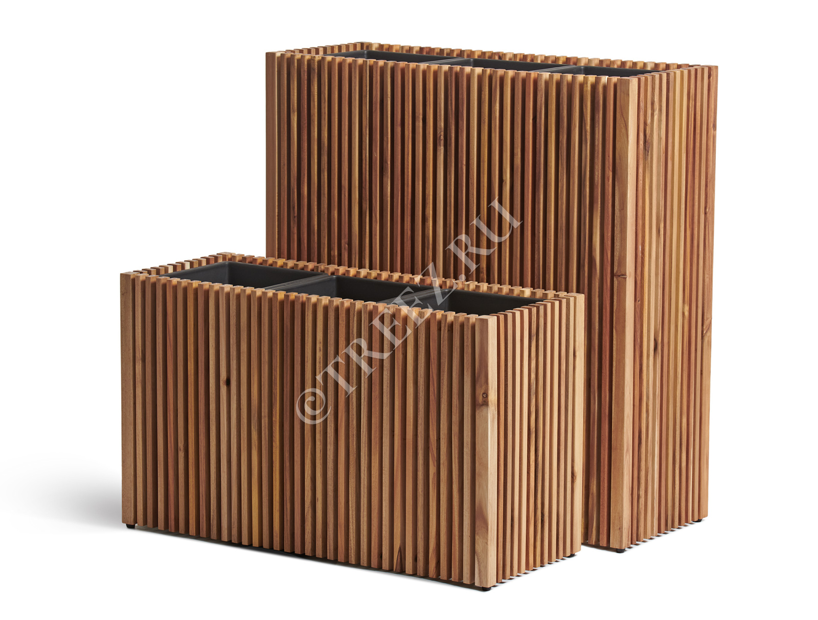 Кашпо Treez Effectory серии Timberline созданы из натуральной древесины тропической акации. Она отличается особой прочностью и не подвержена гниению.