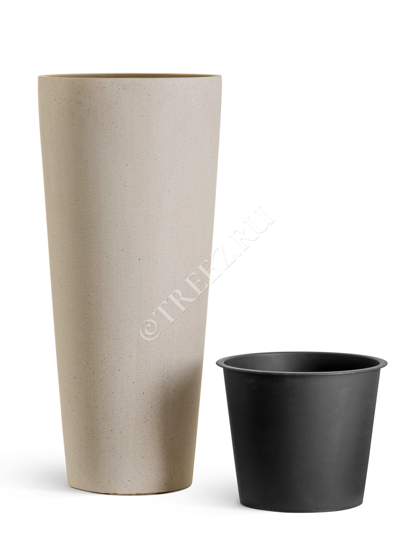 Кашпо TREEZ Effectory - Beton - Высокий конус - Белый песок