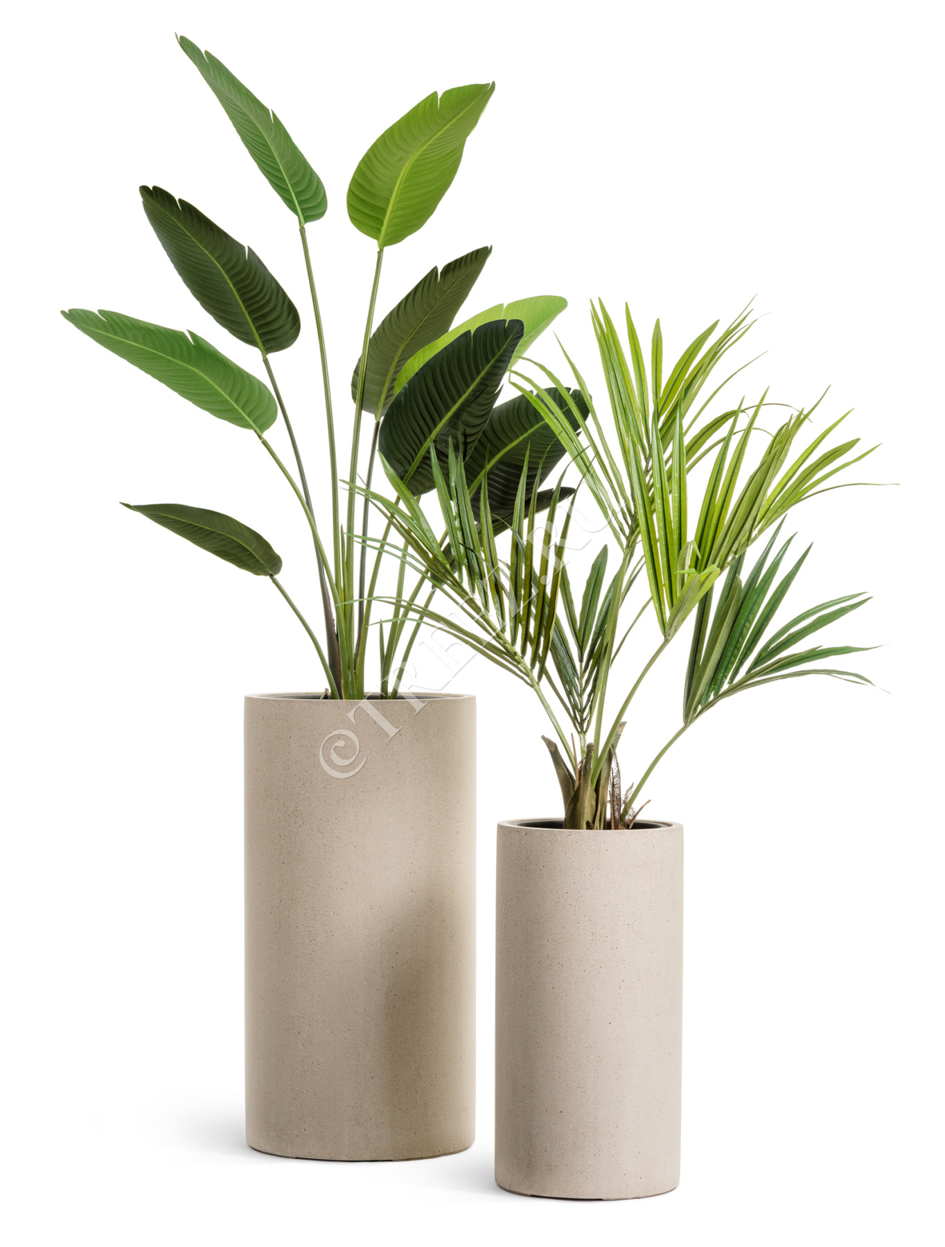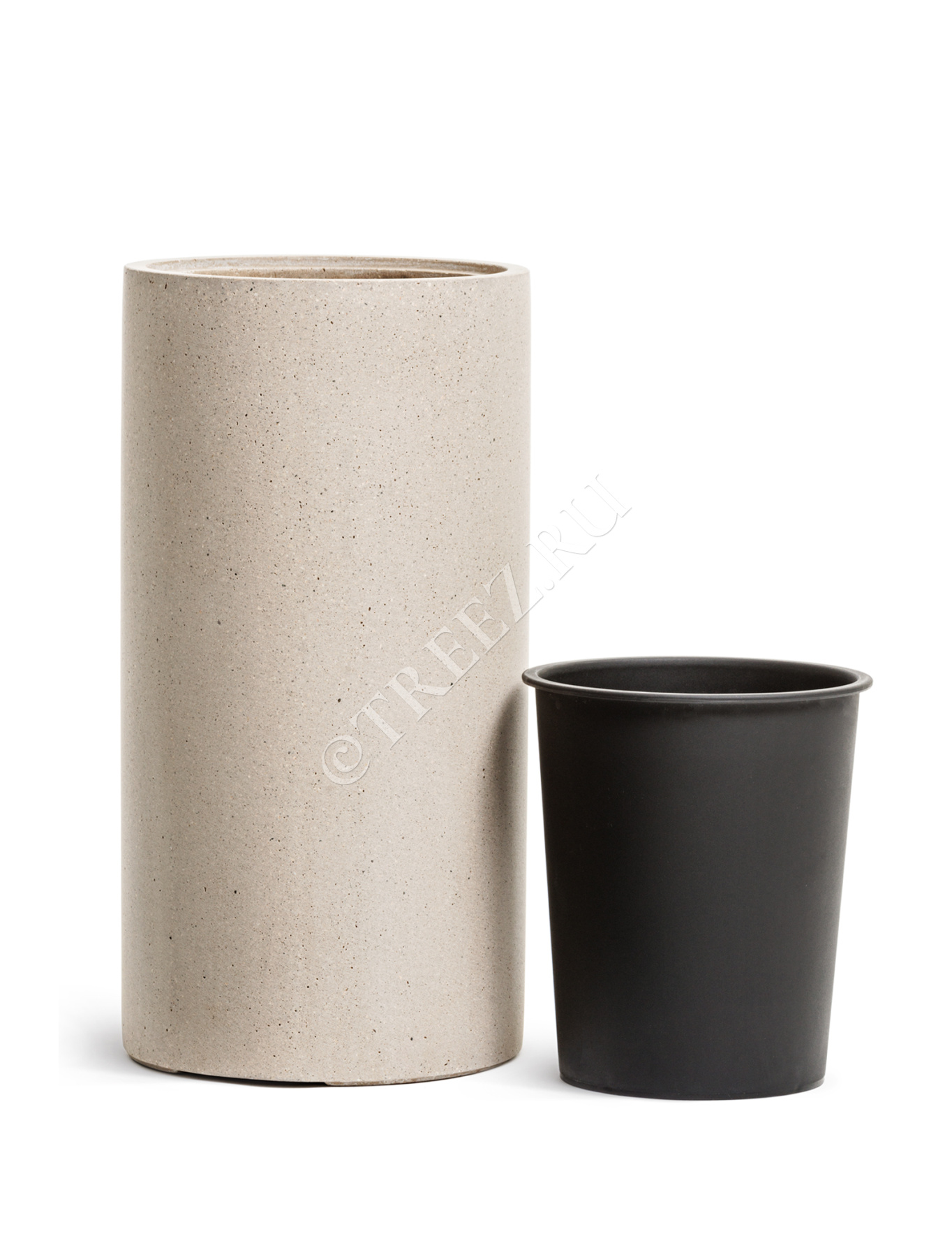 Кашпо TREEZ Effectory - Beton - Высокий цилиндр - Белый песок
