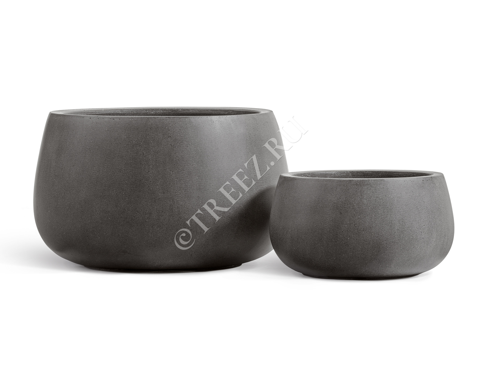 Кашпо TREEZ Effectory - Beton - Низкая сферическая чаша - Тёмно-серый бетон