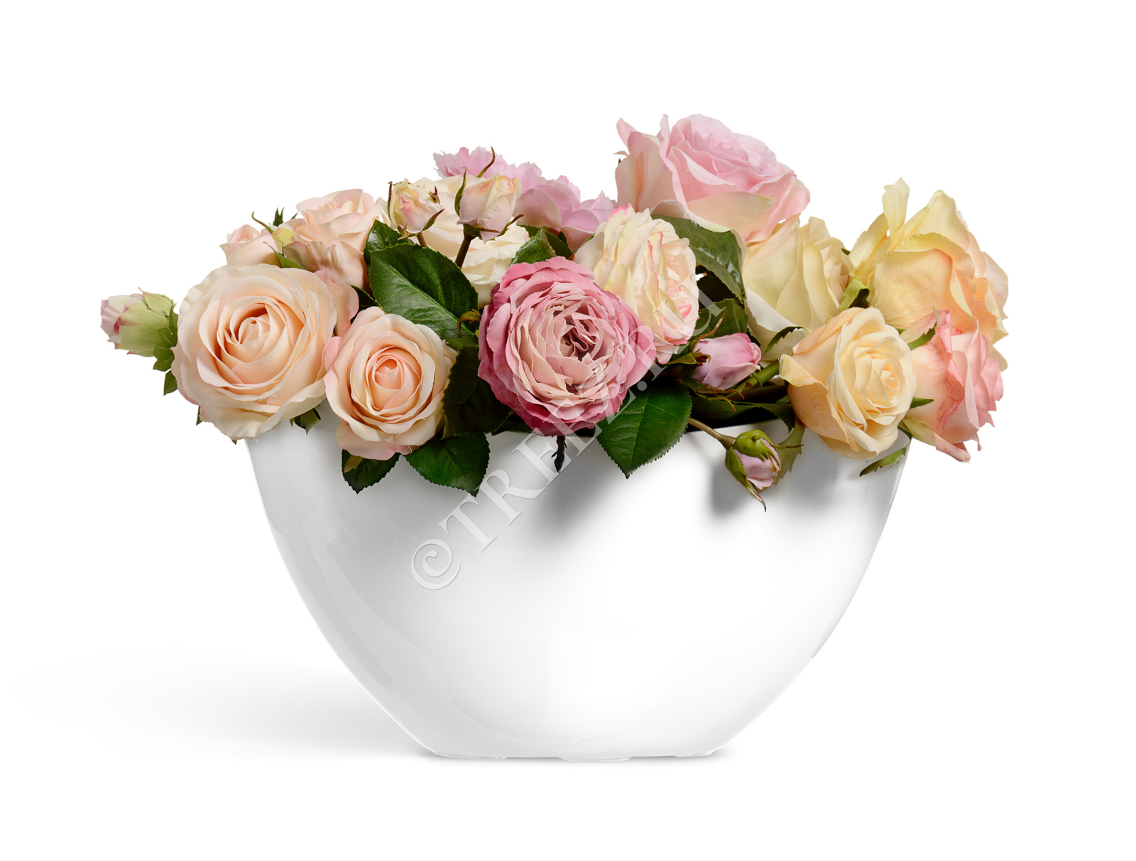 Кашпо TREEZ Effectory - Gloss - Низкая широкая чаша - Белый глянцевый лак