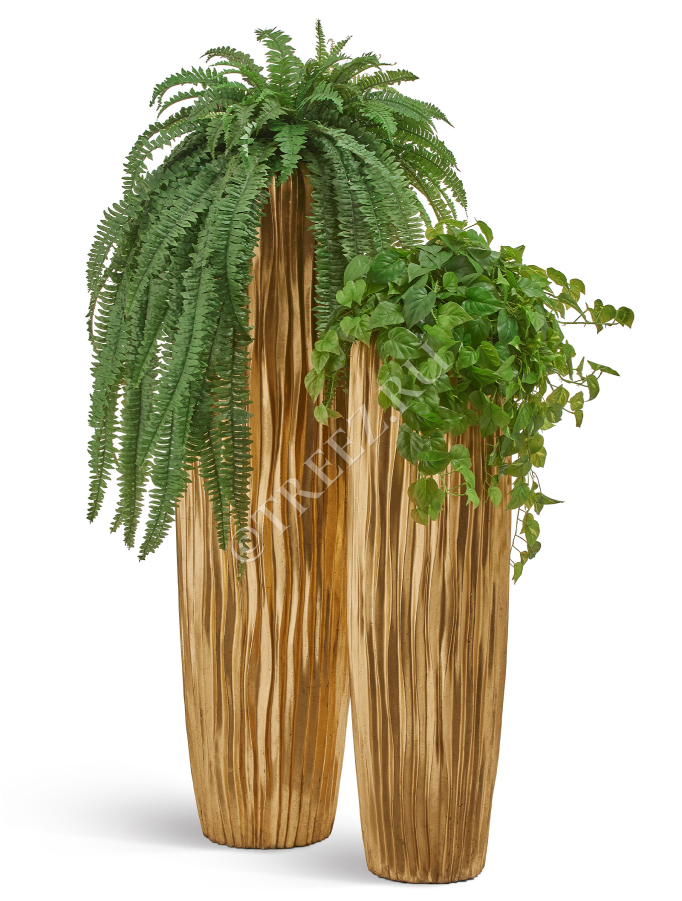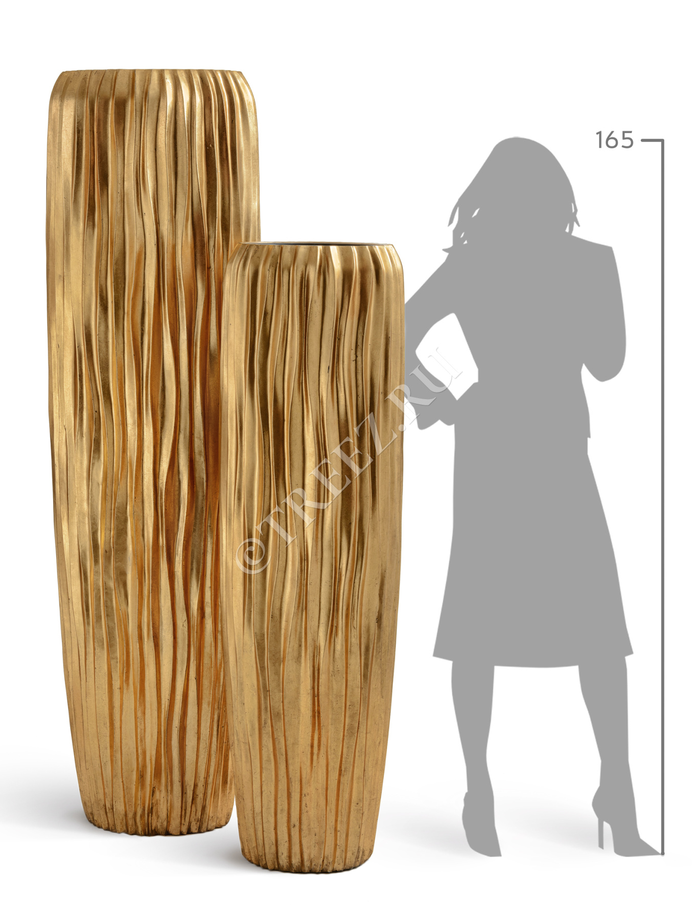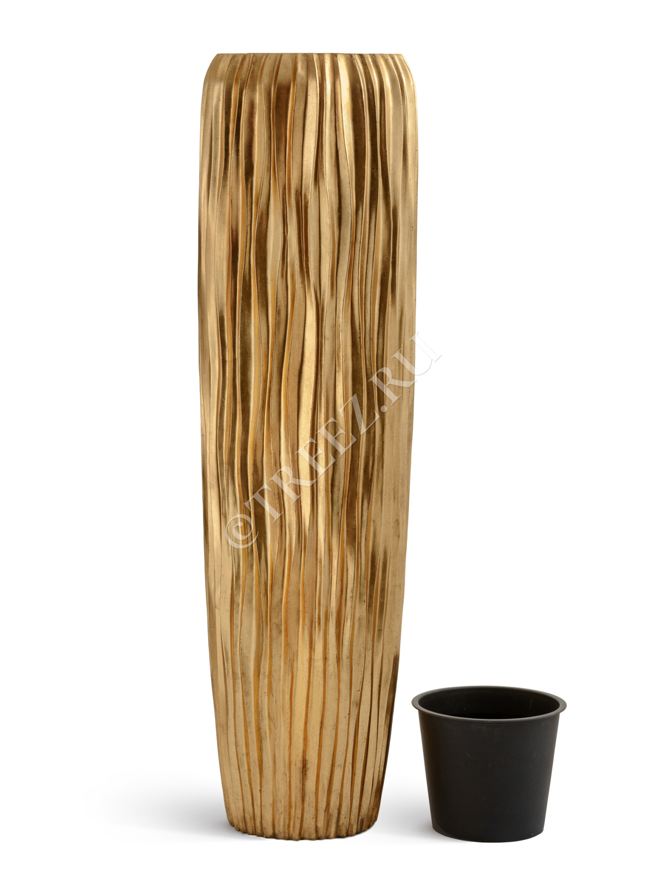Кашпо TREEZ Effectory - Metal - Высокий конус Giant Design Wave - Сусальное золото