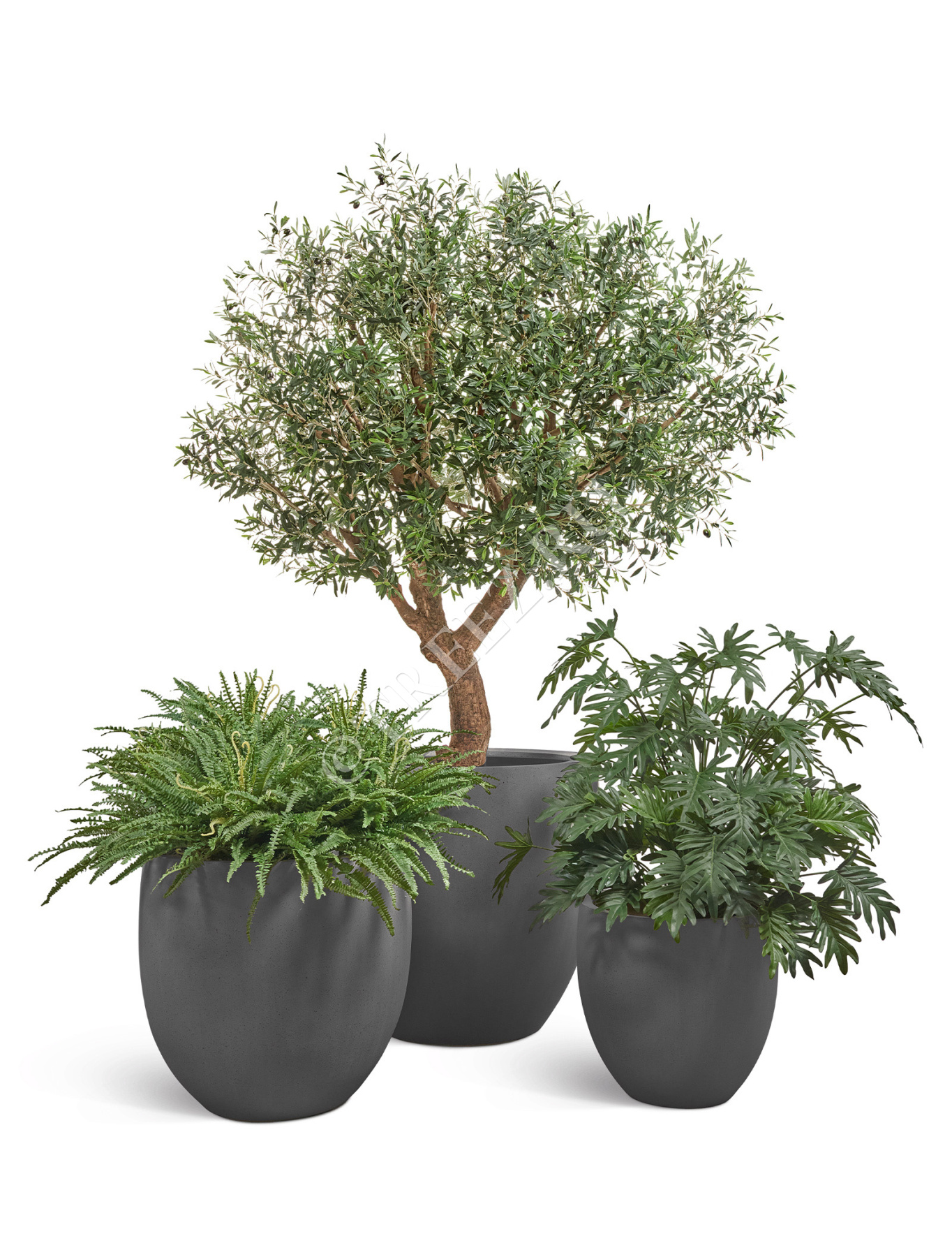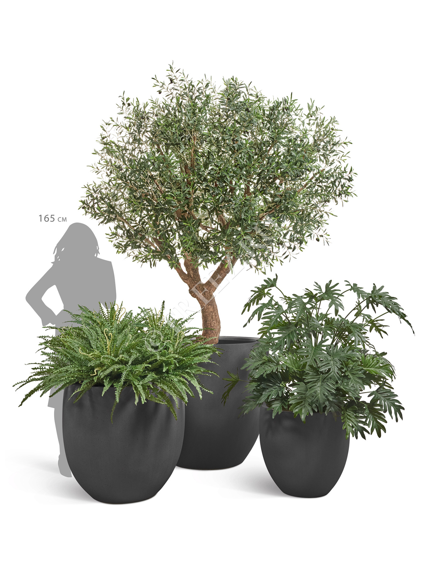 Сет № 8 - Композиция с Оливковым деревом в кашпо Treez Effectory Beton округлый конус