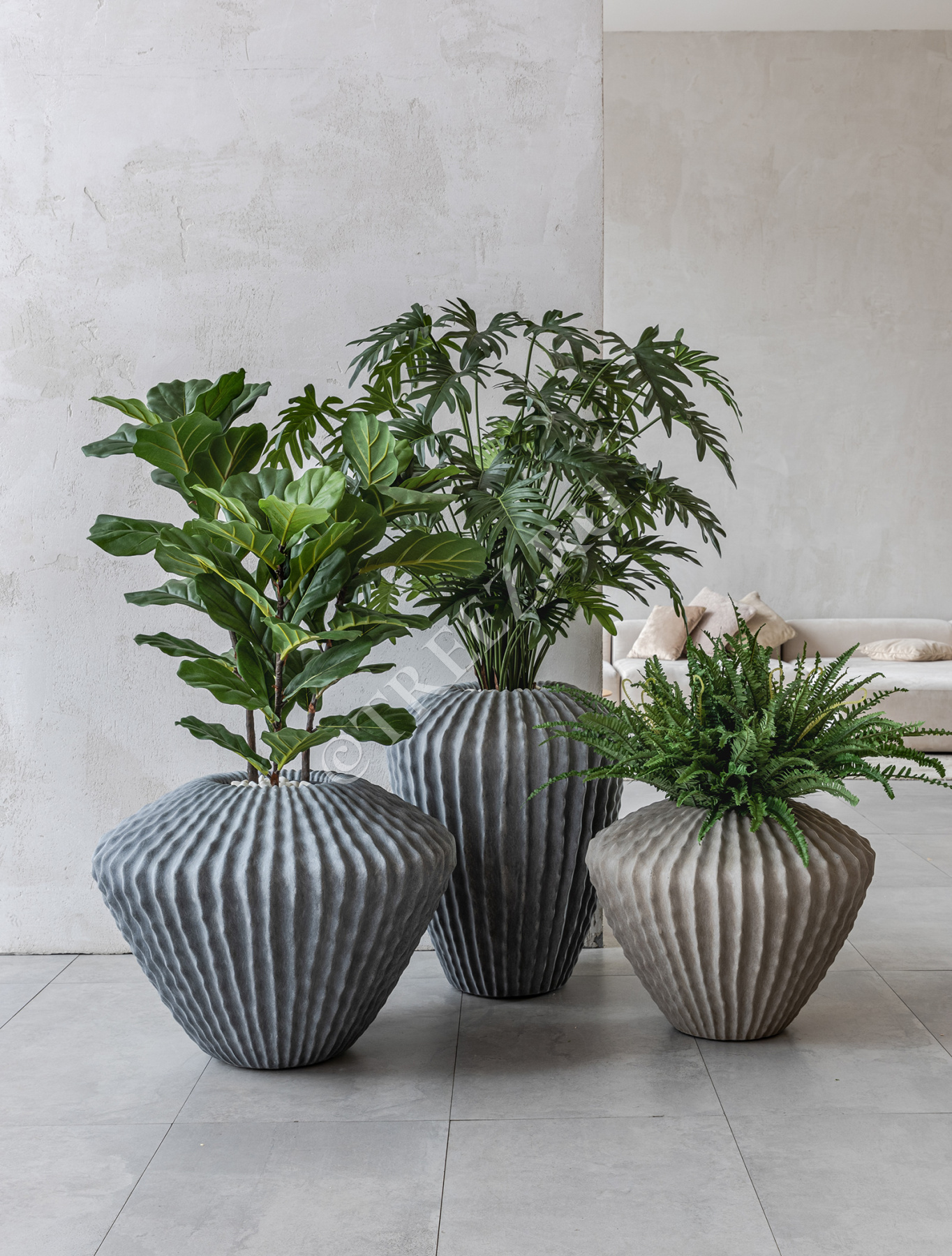Сет № 18 - Композиция Триптих с Филодендроном Ксанаду в кашпо Treez Effectory Moho