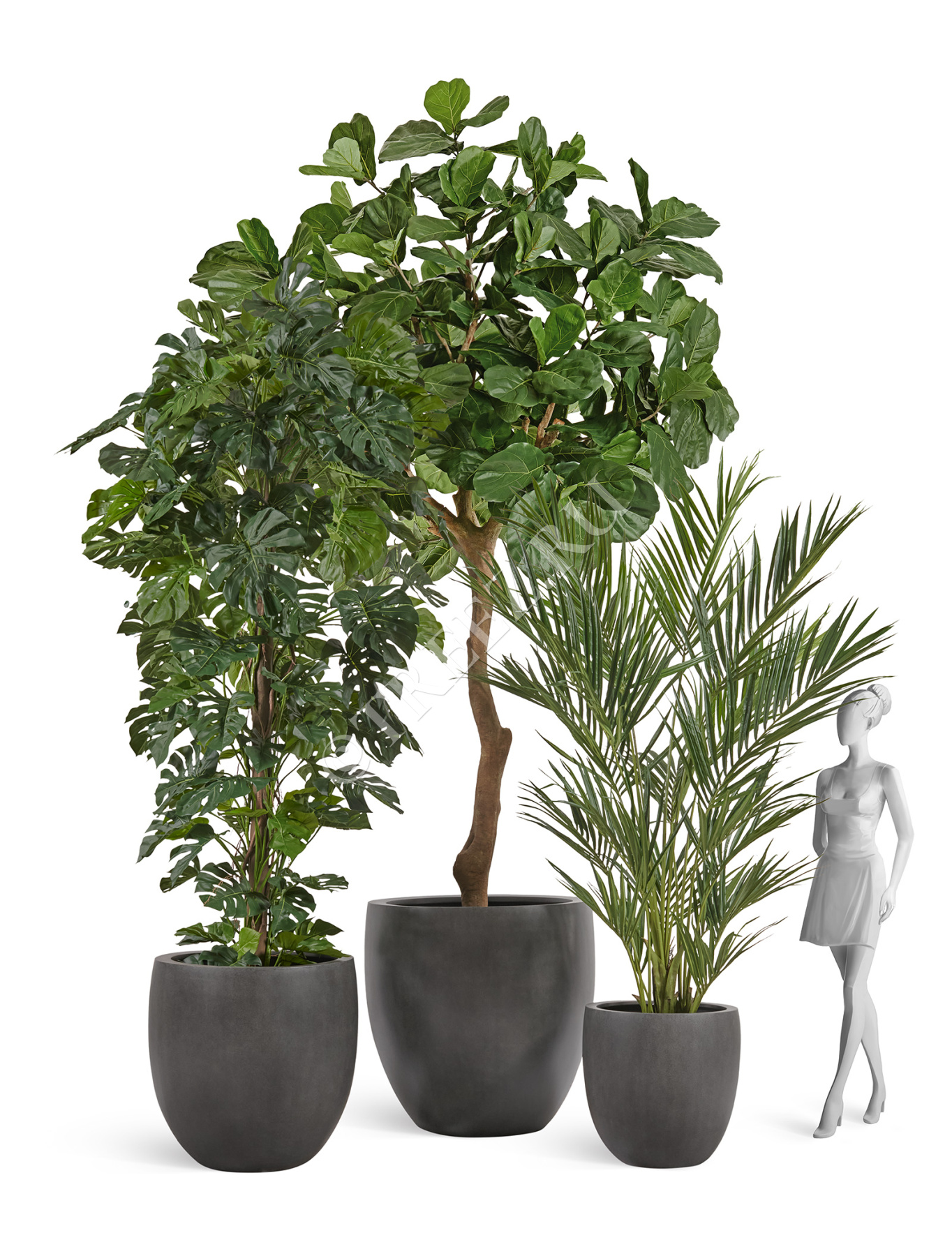 Сет № 19 - Композиция с Фикусом Лирата Гигант и Монстерой в кашпо Treez Effectory Beton