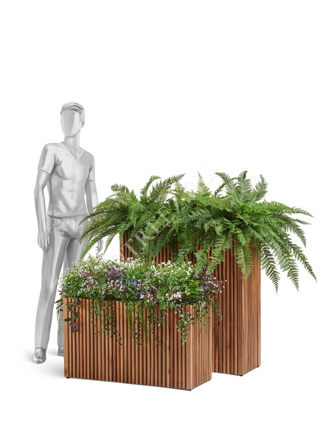 Сет № 143 - Композиция папортоники и цветущее разнотравье в кашпо Treez Effectory Timberline