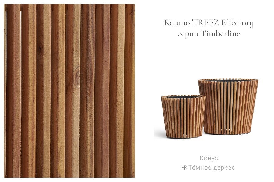 Премиальная коллекция кашпо и дивайдеров Treez Effectory Timberline из тропической акации – для стильного зонирования и украшения интерьера и экстерьера.